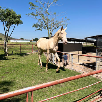 El caballo joven español de capa genética perlina, es un ejemplar que destaca por su elegancia y porte noble. Su pelaje es de un tono dorado claro con matices perlados que brillan bajo la luz del sol, dándole una apariencia única y sofisticada. Su crin y cola suelen ser más claras, casi blancas, lo que resalta aún más su belleza natural. Este joven caballo tiene una estructura atlética y bien proporcionada, con una musculatura definida que refleja su potencial para movimientos ágiles y gráciles. Temperamento enérgico pero manejable, ideal para disciplinas de alta escuela o doma clásica.